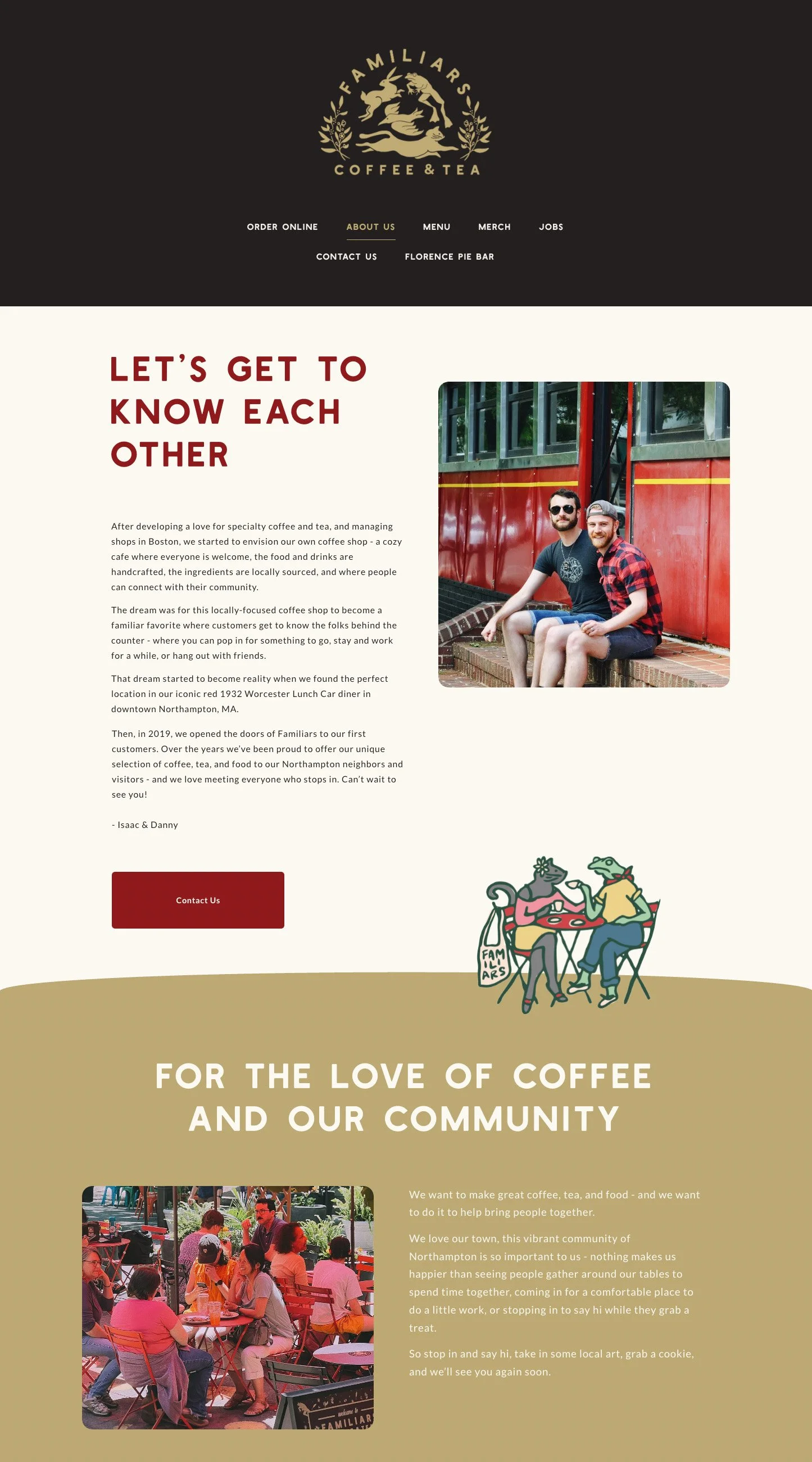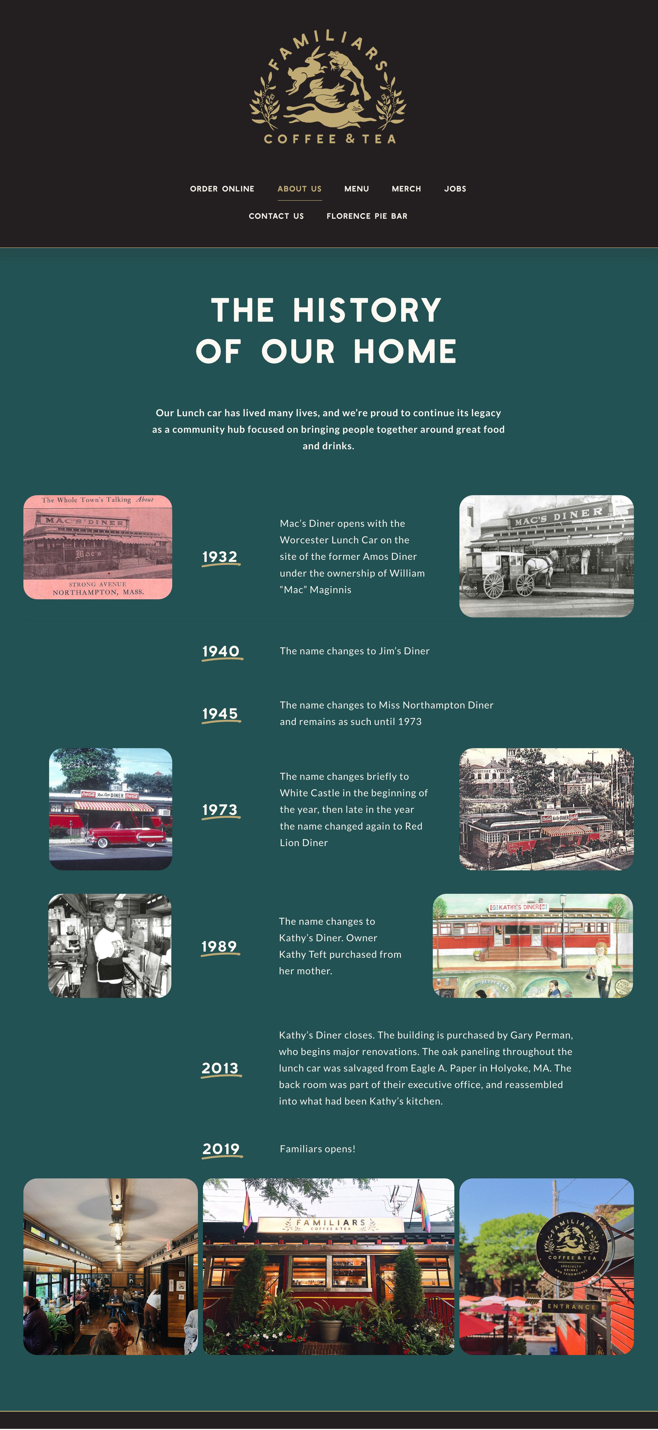 Familiars is situated in a historic space with a long heritage of serving the community. The current owners had the honor of helping to bring new life to the lunch car after it’s renovation, and they often get questions about the space’s history so we were sure to include that part of the story in the new website.